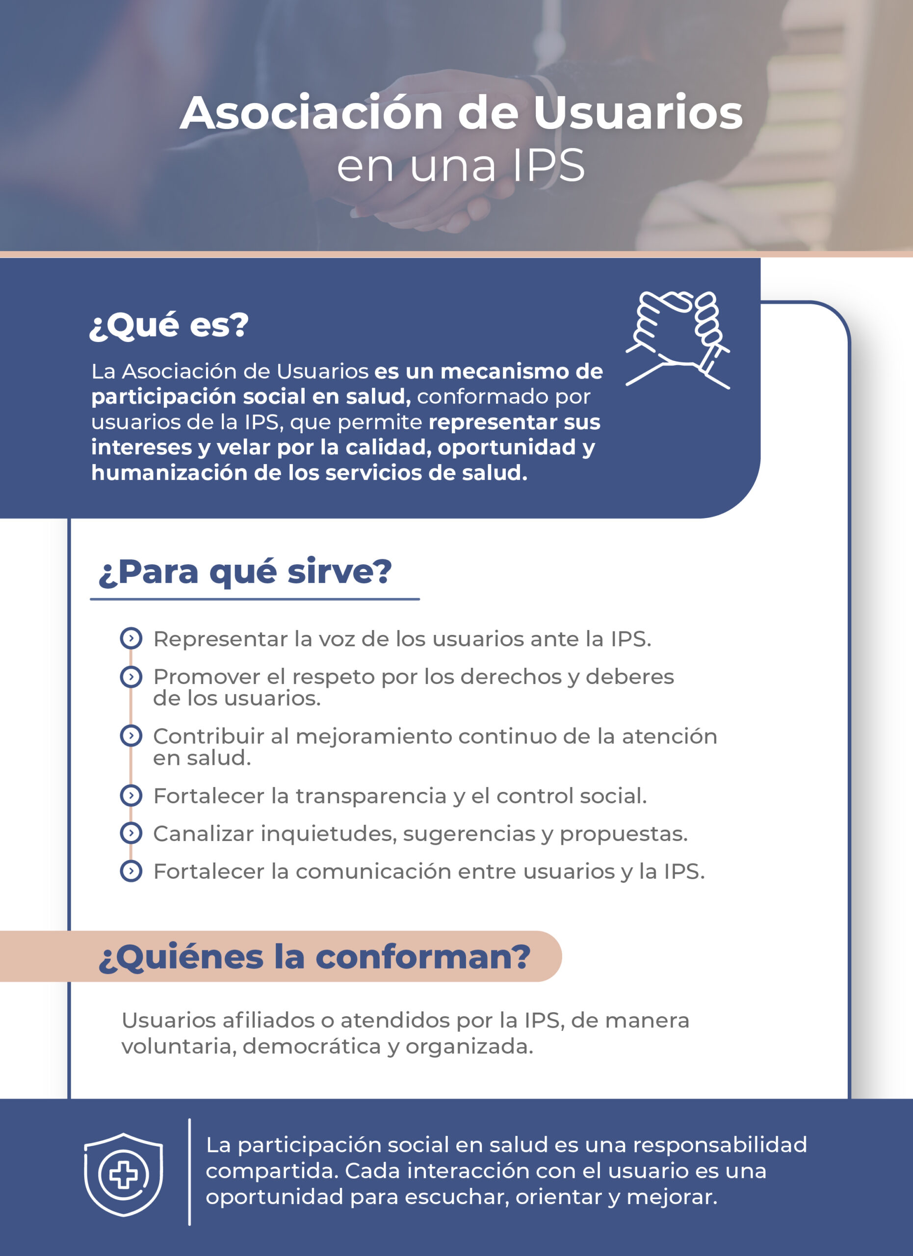 Promueve la corresponsabilidad entre pacientes, comunidad e instituciones prestadoras de servicios de salud.